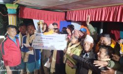 रनिङ सिल्डमा सहभागी खेलाडीलाई गाउँपालिकाका अध्यक्षबाट आलुको चिप्स