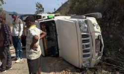 ओखलढुङ्गाबाट काठमाडौँ जाँदै गरेको बोलेरो दुर्घटना,चालक घाइते
