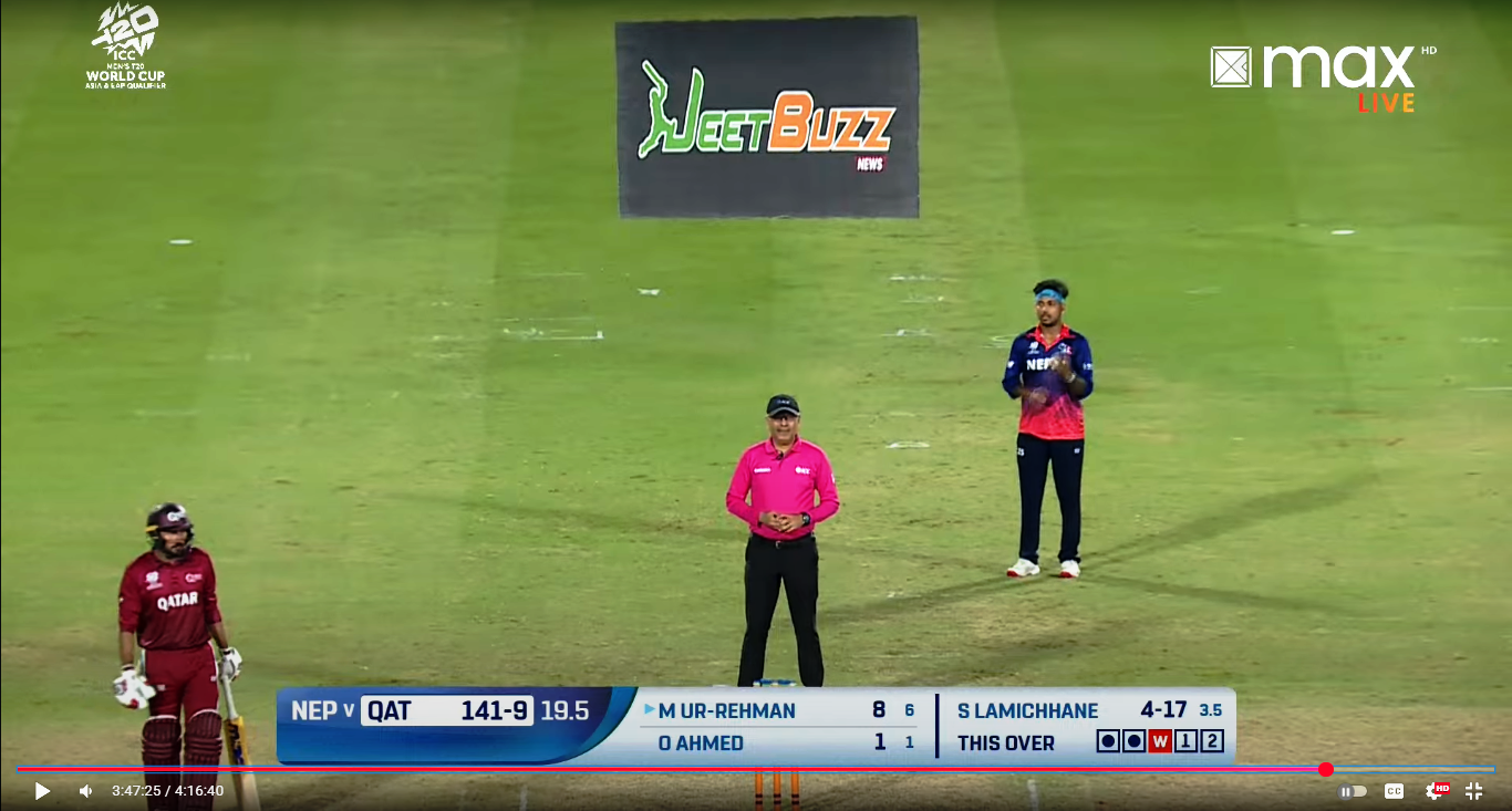 सात ओभरमा अर्थात ४२ बलमा कतारलाई जितका लागि ४३ रन आवश्यक रहँदा नेपालको जित कल्पना बाहिरको कुरा थियो । नेपाल समर्थक दर्शकहरु निराश बन्न लागेका थिए । समर्थकहरुले सामाजिक सञ्जालमा समेत अब नेपाल हार नजिक भन्न थालिसकेका थिए । तर नेपाली खेलाडीले रोमाञ्चक खेल खेल्दै जितको मुखमा रहेको कतारसँग पाँच रनको जित हासिल गरेको हो ।