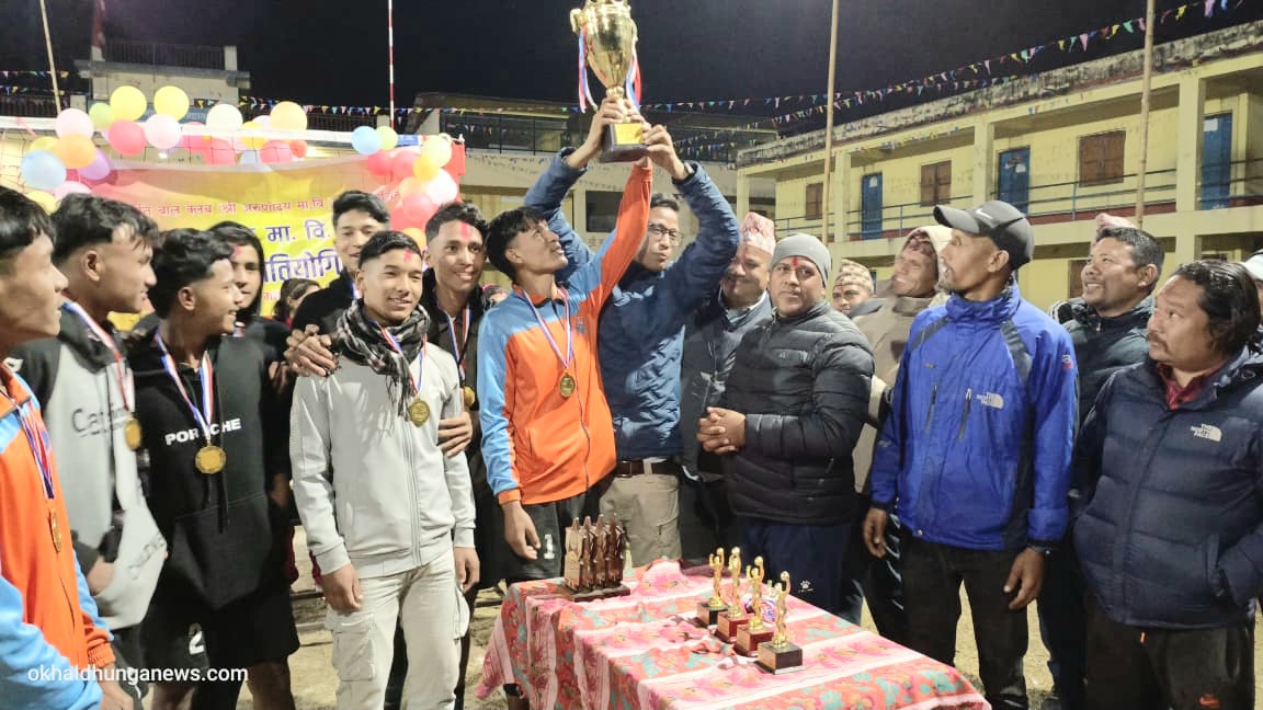 गत माघ ९ गते देखी ११ गतेसम्म रात्री कालीन खेल समेत सञ्चालन भएको प्रतियोगिताका विजेता टीम तथा खेलाडीहरुलाई कार्यक्रमका प्रमुख अतिथि लिखु तामाकोशी गाउँपालिका २ सैपु रामेछापका अध्यक्ष एवम् अरुणोदय माविका पुर्व प्रधानाध्यापक सन्तोष पौडेलले नगद सहित ट्रफी, मेडल र प्रमाणपत्र प्रदान गरेका थिए । प्रतियोगितामा रामेछाप र ओखलढुङ्गा जिल्लाका गरी १५ वटा टिमले सहभागिता जनाएका थिए ।