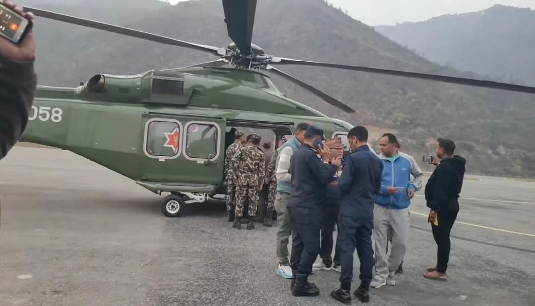 दुर्घटनाका घाइतेहरुलाई नेपाली सेनाको हेलिकप्टर मार्फत काठमाडौं लगिदै