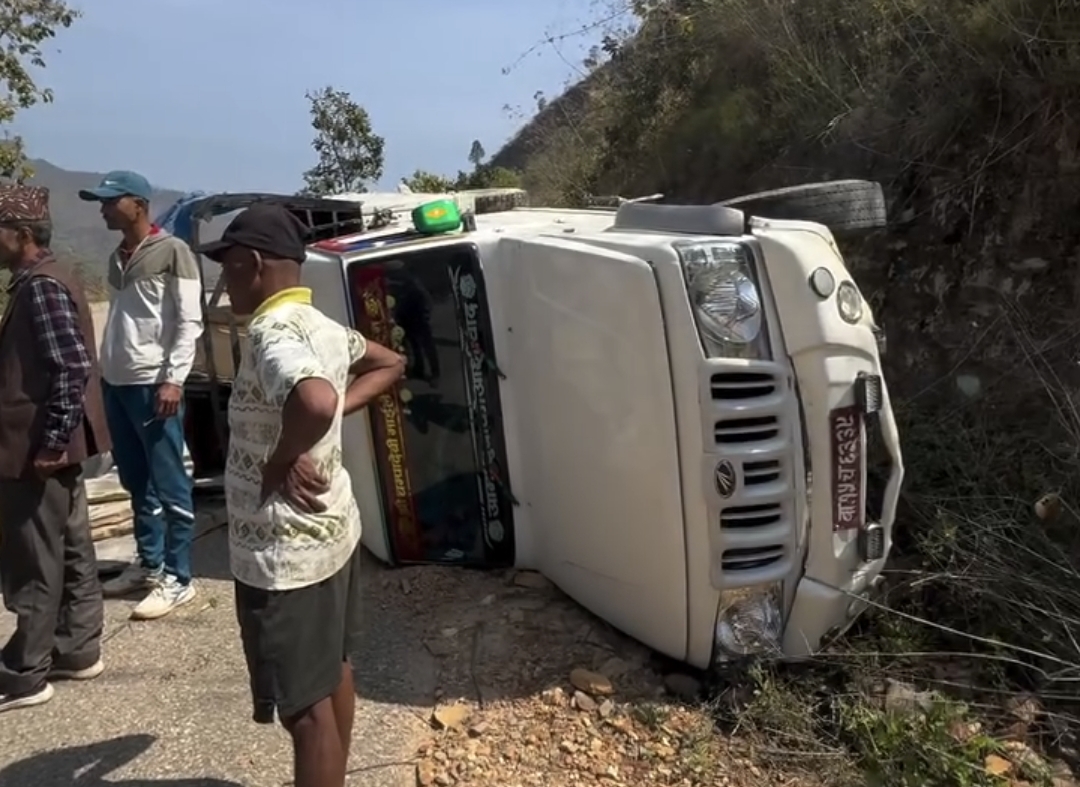 ओखलढुङ्गाबाट काठमाडौँ जाँदै गरेको बोलेरो दुर्घटना,चालक घाइते