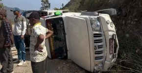 ओखलढुङ्गाबाट काठमाडौँ जाँदै गरेको बोलेरो दुर्घटना,चालक घाइते