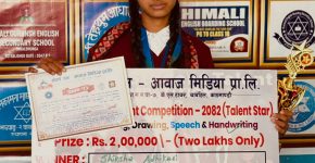 हस्तलेखन विधामा मनकामना मावि ओखलढुङ्गाकी छात्रा अधिकारी नेपाल टप, जितिन २ लाख